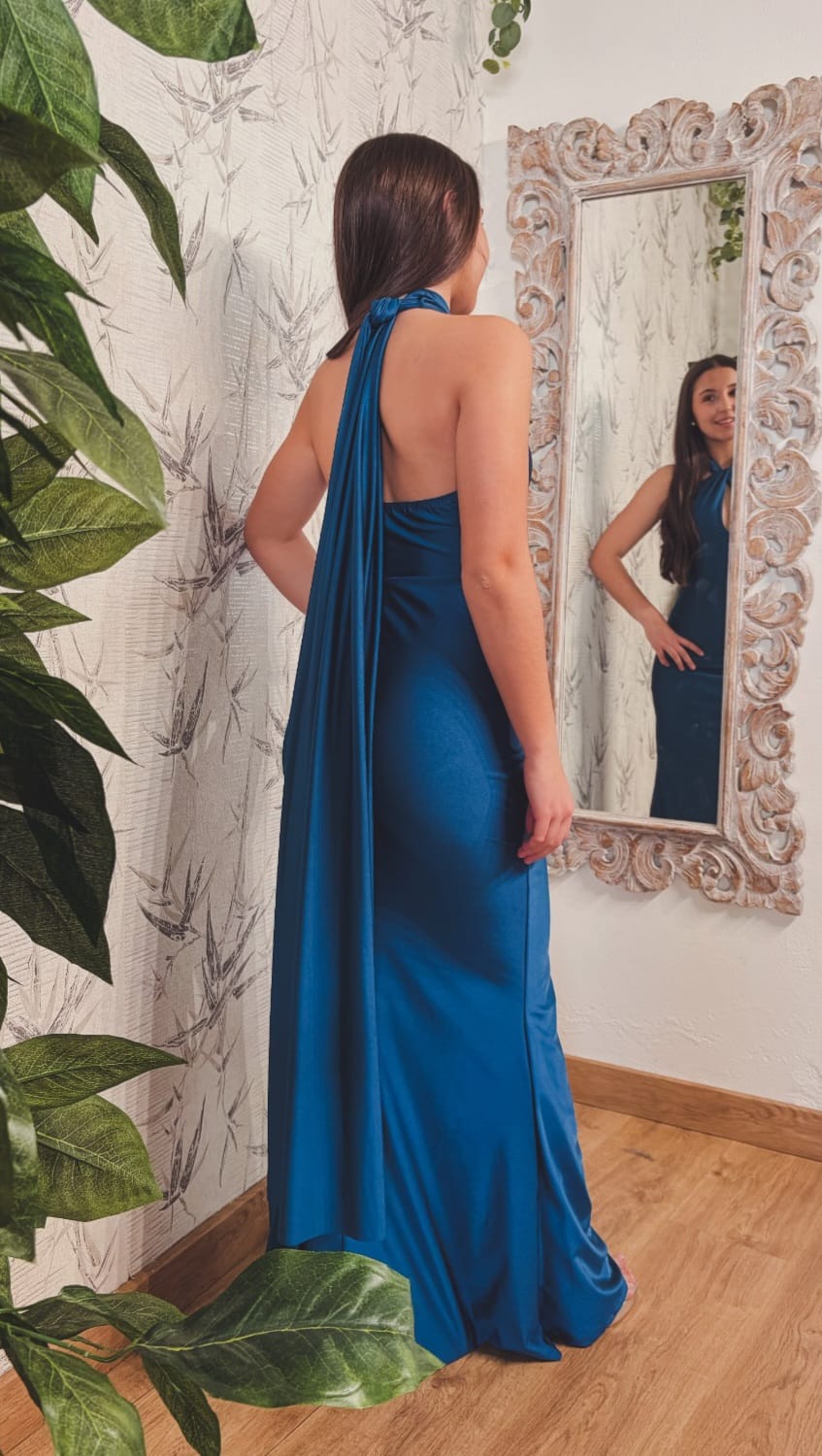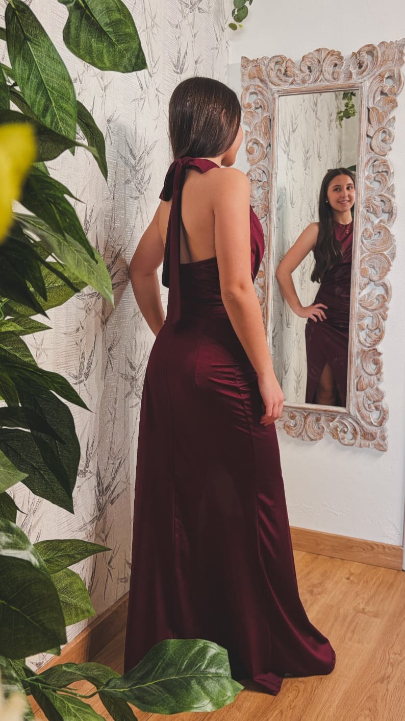 49.00€El vestido Juliete presenta un diseño elegante y moderno que resalta la figura de quien lo lleva de manera sofisticada. La parte superior es de corte halter, con un cuello que recoge delicadamente el torso, mientras que la tela se drapea de forma fluida, creando un efecto visual de suavidad y movimiento.
