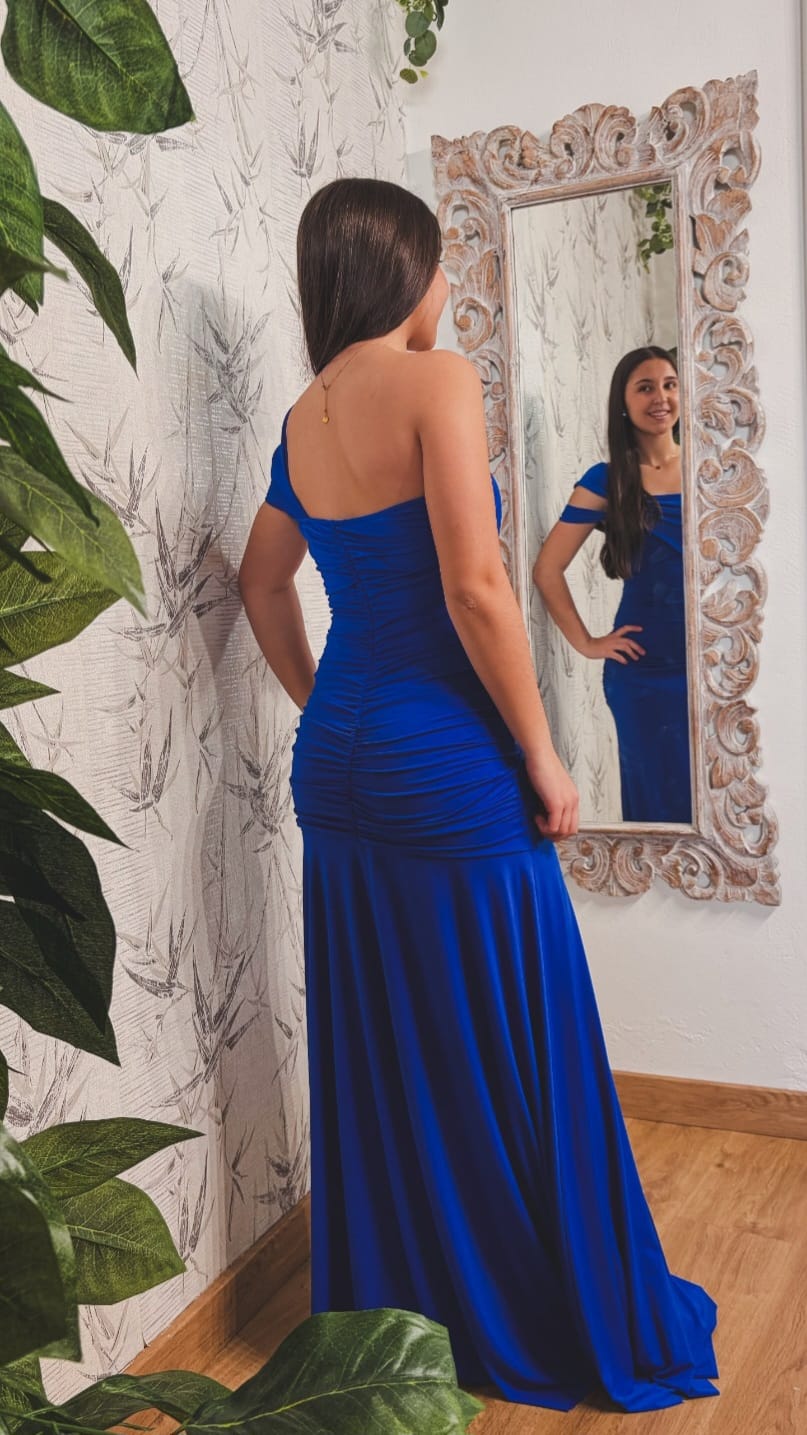 45.00€El vestido Matilde es ajustado al cuerpo y de un diseño elegante y sofisticado. Su estructura tiene un solo tirante que deja un hombro al descubierto, mientras que el otro lado del vestido presenta un detalle de manga “corta”, aportando un contraste sutil en el diseño.