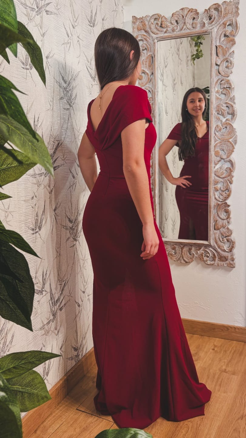45.00€El vestido Rossina largo destaca por su elegancia y silueta estilizada que se ajusta delicadamente al cuerpo, realzando la figura con una caída fluida hasta el suelo.