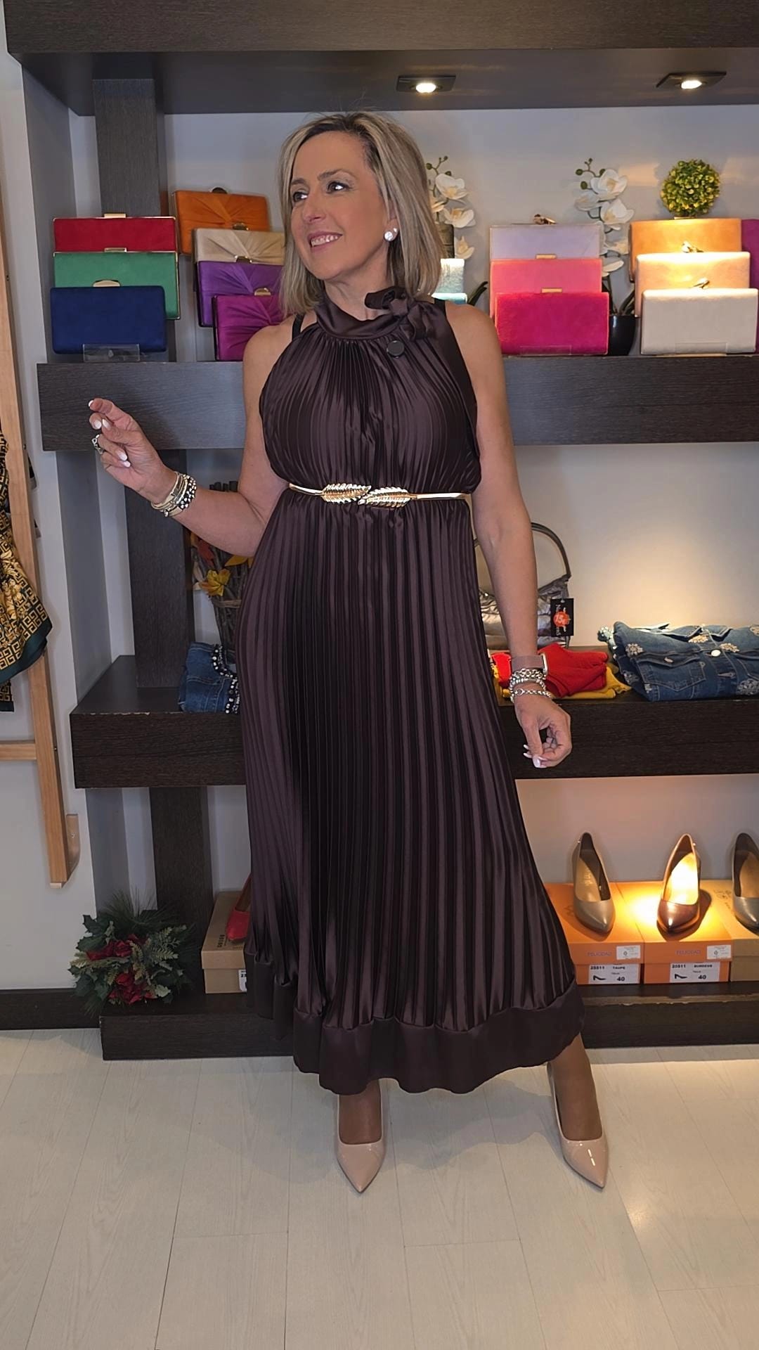 28.00€El vestido Plisado Miry tiene un elegante diseño ideal para ocasiones especiales. Está confeccionado en un tejido de punto con textura acanalada.
