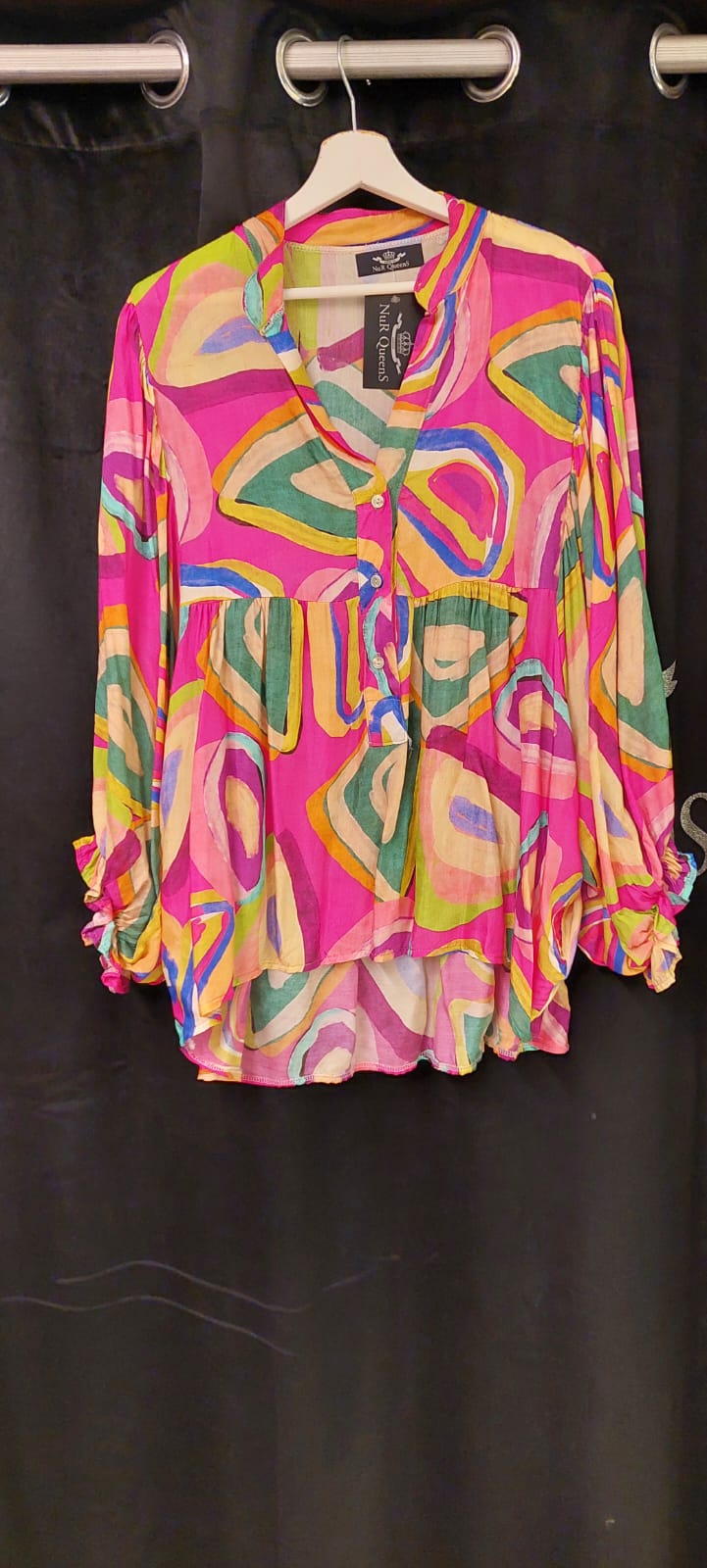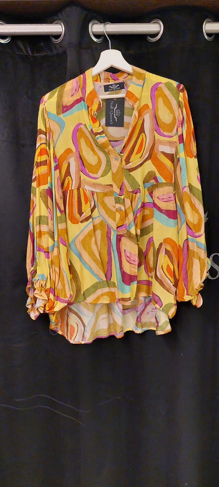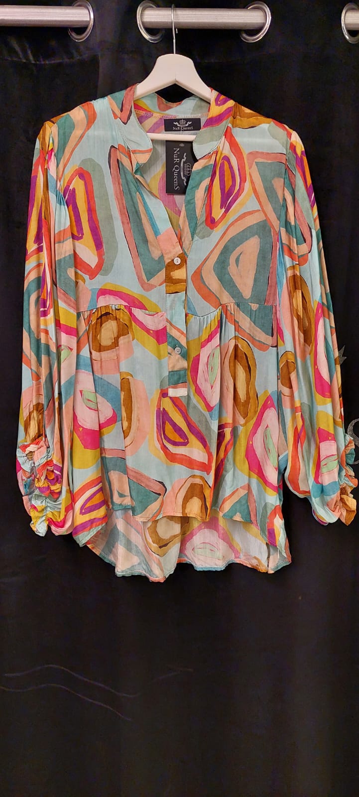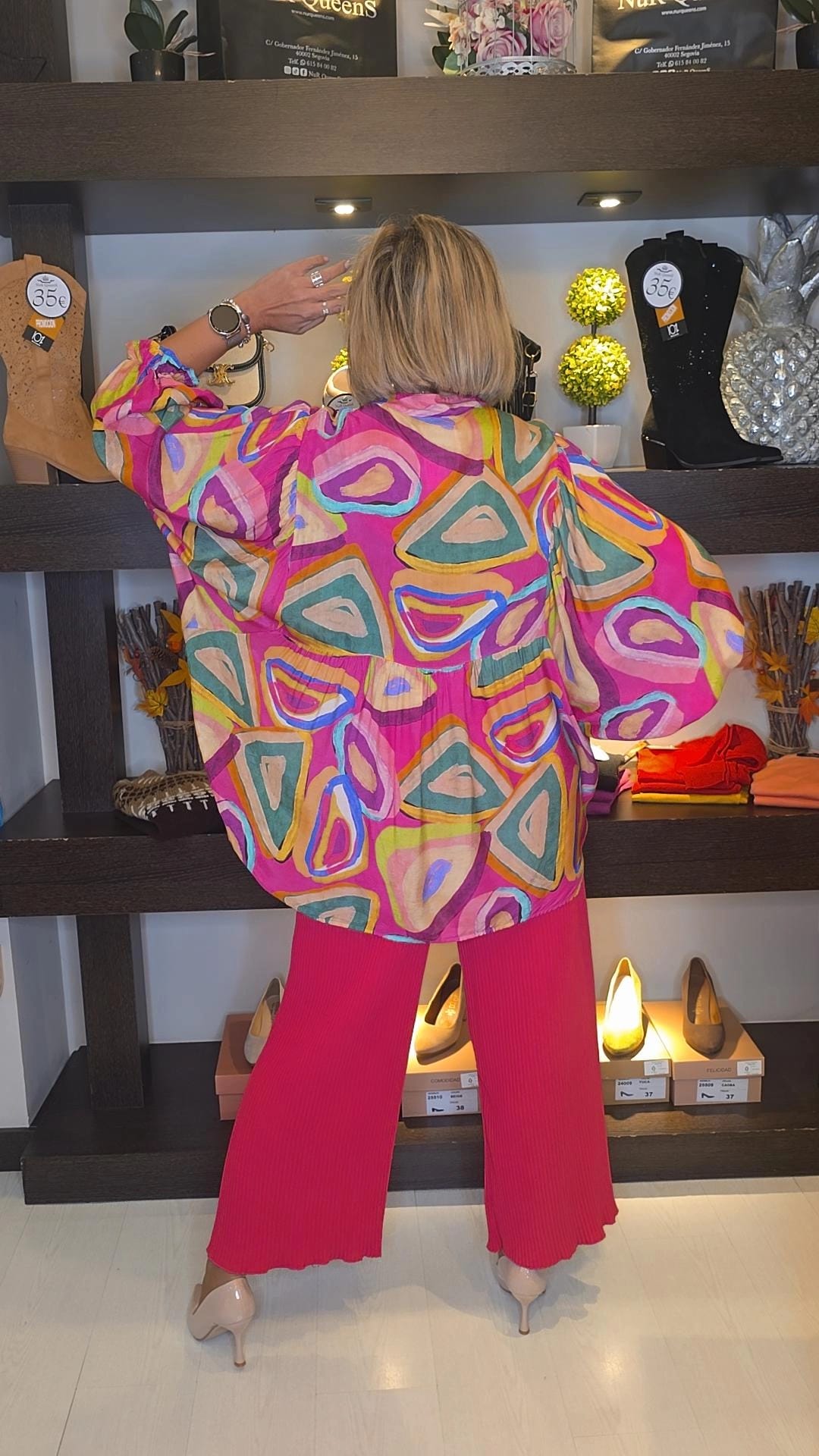 La Blusa Brasil confeccionada en tela fluida y ligera, perfecta para aportar movimiento y frescura al look. Su diseño destaca por un estampado abstracto en tonos vibrantes, que combina colores cálidos y alegres, ideal para dar vida a cualquier conjunto.