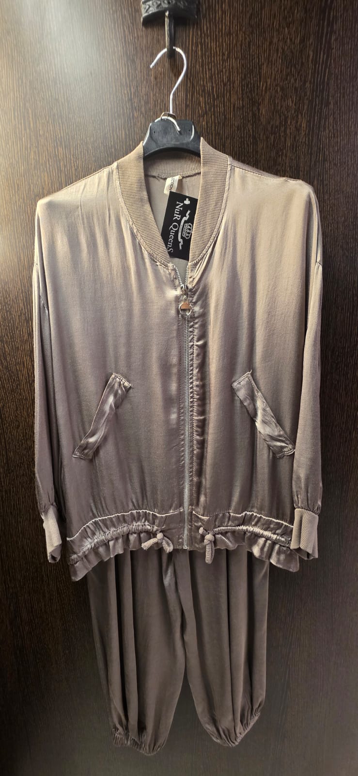Este conjunto Bomber tipo raso combina comodidad y sofisticación en una sola propuesta. El pantalón estilo bomber, con un tejido suave y fluido, aporta un brillo delicado que eleva cualquier look. Sus bolsillos laterales añaden un toque práctico y moderno, mientras que el corte relajado garantiza libertad de movimiento sin perder estilo.