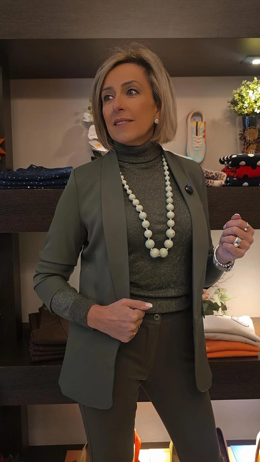 Combina nuestra Falda Yasmin con el jersey Leticia, el abrigo militar Aroa y el botín Carolina ideal para cualquier ocasión.