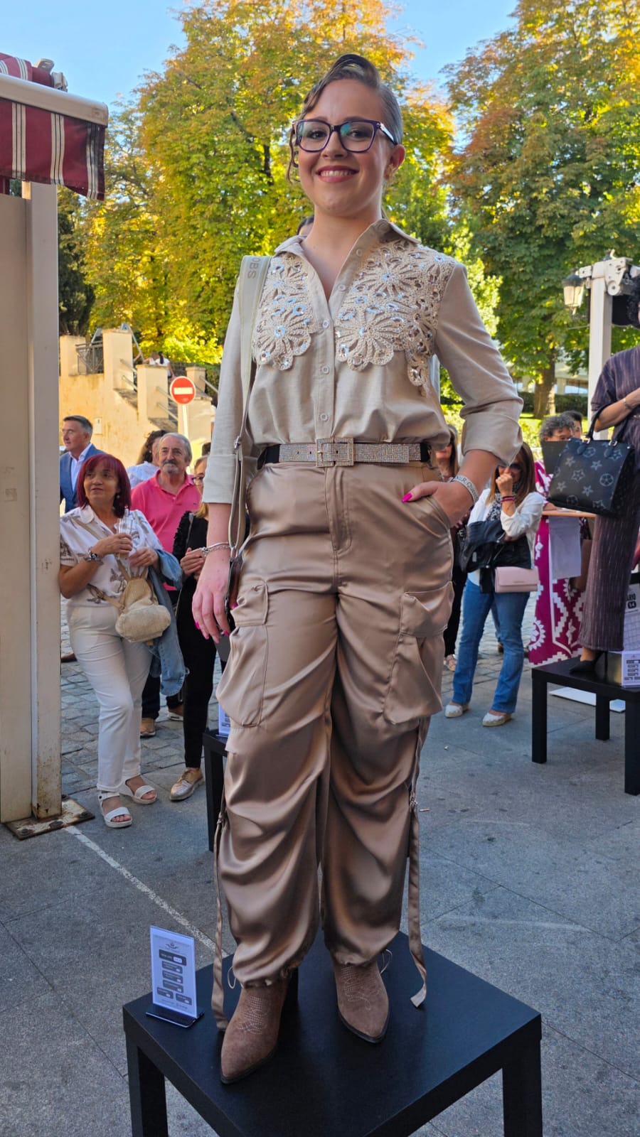 El pantalón Matilde presentan un diseño moderno y sofisticado, confeccionados en un tejido satinado color topo que aporta un brillo sutil y elegante.