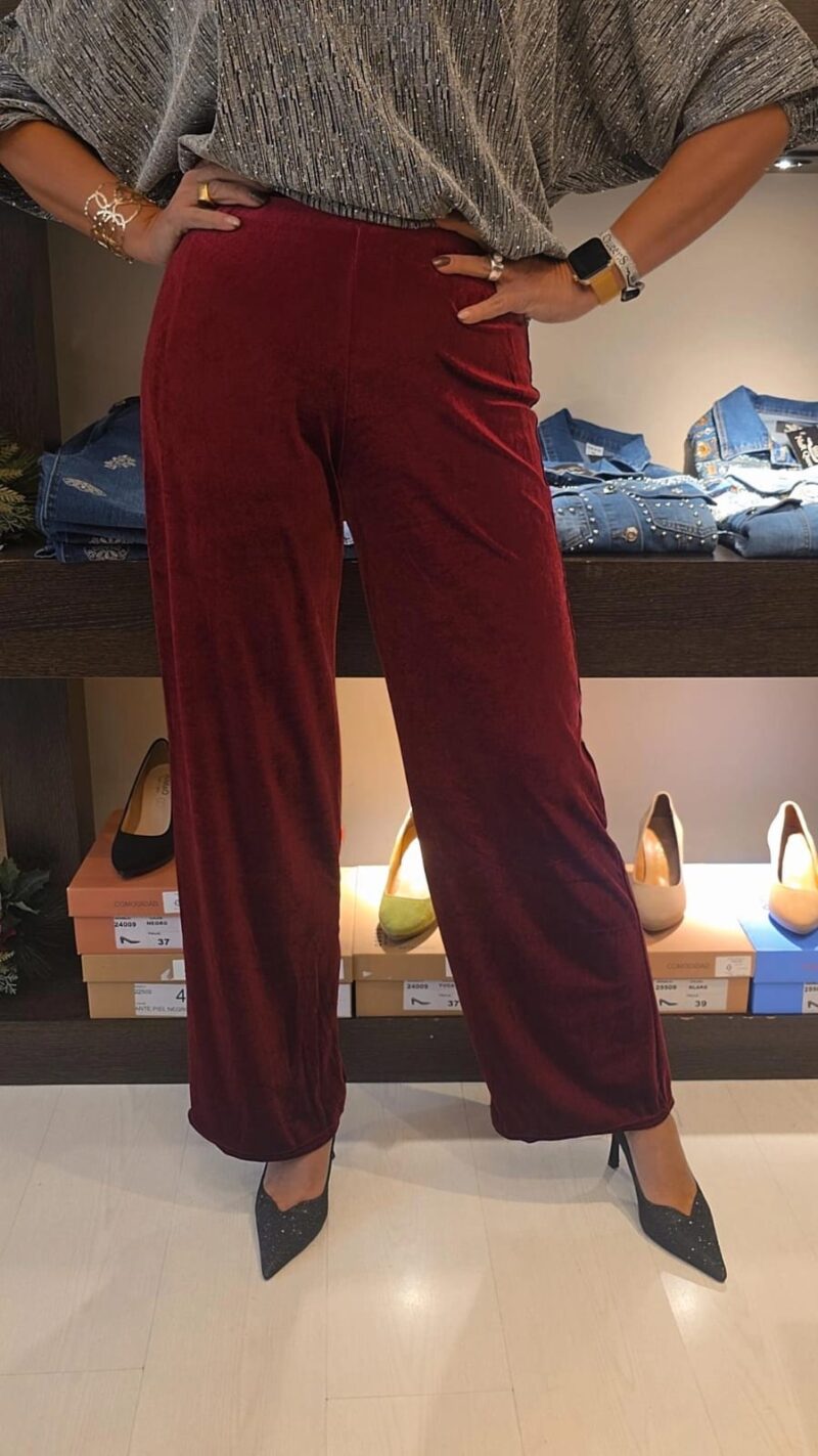 El pantalón terciopelo curvy confeccionado en un tejido de terciopelo fluido que acompaña el movimiento con naturalidad.