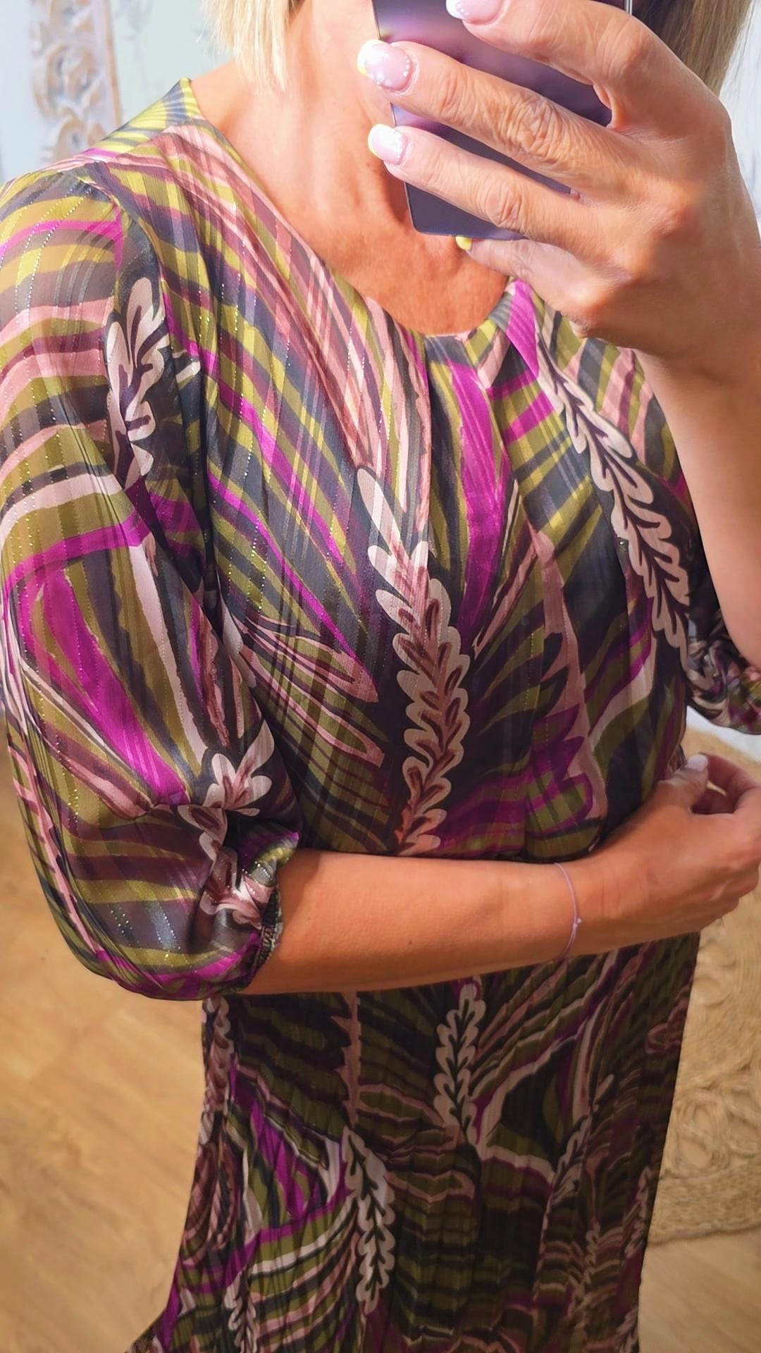Vestido Lurex plisado estampado con un destello de lurex.