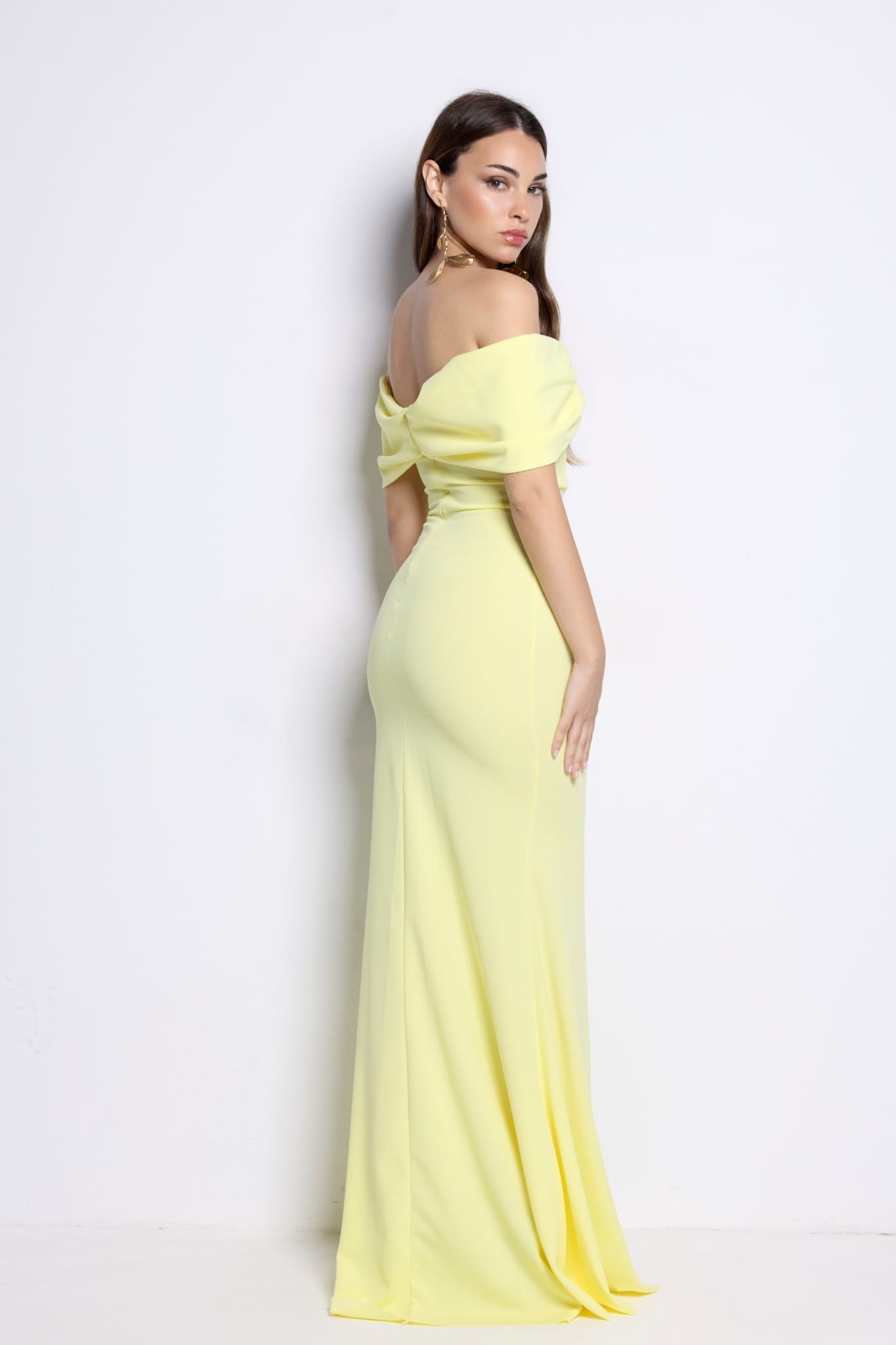 El vestido Piluca tiene un diseño elegante y sofisticado que resalta la figura de quien lo lleva. La parte superior es de corte strapless, con una delicada caída de tela en los hombros que crea un efecto de drapeado, aportando un toque de feminidad y estilo.